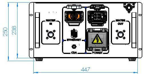 4. WATER: Pipe connectors, the inlet and outlet for cooling water to flow in and return. (See Table 6 for the laser model and corresponding water pipe size for cooling system requirements)